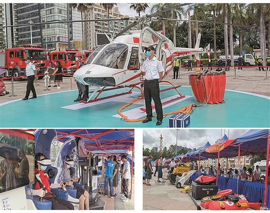 誓师大会结束后,结合“防范化解灾害风险,筑牢安全发展基础”的第13个全国防灾减灾日宣传主题,区应急管理局组织举办了防灾减灾宣传周的启动仪式,活动现场设有电力抢险设备、自然灾害VR体验、火场逃生体验、心肺复苏教学等14个展区,11块宣传展板,其中共有19台抢险车辆、2台直升机、12辆铁骑以及地面勘探雷达、水上救援机器人、水下排涝机器人、地质灾害监测救援装备、可升降照明设备、无人机等先进新型装备参加展示。还设置了模拟灭火体验、体验心肺复苏和自然灾害VR体验等实操性强的项目,供群众体验、学习、参观。活动紧扣防灾减灾宣传主题,以沉浸式体验教学方式,面向社会公众普及洪涝、台风、地质、森林草原火灾等各类灾害知识和防范应对基本技能。