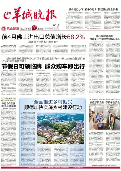 羊城晚报讯 记者张闻、通讯员陈婕报道:19日,记者从佛山国家高新区管委会获悉,2021年第一季度,佛山国家高新区社会民生事业稳步发展,产业经济运行平稳。在高新区2370家火炬企业中,经科技部认定高新技术企业有1864家,规模以上企业达1575家。以智能装备、智能家居、光电核心、新材料、大健康以及绿色能源等为代表的佛山高新区六大支柱产业的营业收入达到1148亿元,同比上升25.60%。