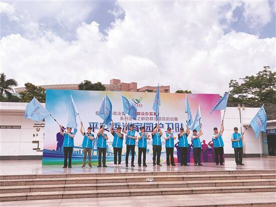 羊城晚报讯 记者郑达摄影报道:5月20日上午,珠海香洲区委政法委“我为群众办实事”系列活动之群防群治项目正式启动,活动现场举行了平安香洲家园护卫队授旗仪式,珠海香洲多了一支“家园护卫队”。