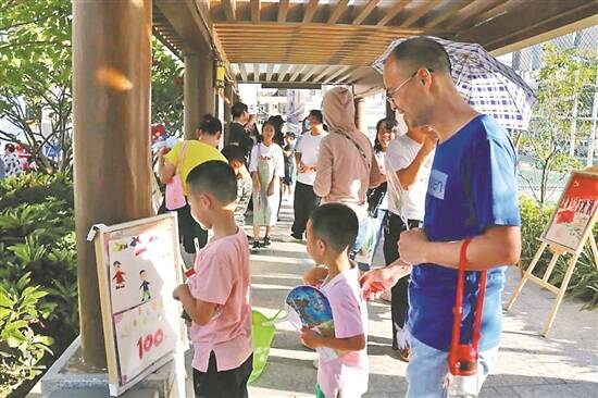 “出淤泥而不染”的荷花、鲜艳耀目的党旗……居民们一边欣赏桔清园内的廉政文化、家风故事,一边欣赏少年们的绘画作品。在桔清园廉政长廊,清廉正直的家世家风故事与一幅幅绘画作品完美契合。“学党史、悟思想,聆听家风家训、感受廉政文化,孩子们用灵动的双手、巧妙的构思,让我感受到了他们在崇廉向善行动中的润物无声。”