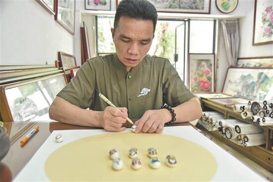 “教科书里的人物”袁隆平在人们心里有着特殊地位。近日,位于西樵山下南海丝厂的广东蚕桑丝织文化技艺研学基地画画老师梁金元用了一天的时间,在10个双宫蚕茧上画出了10个袁隆平,以此纪念袁隆平对于国家与人民作出的贡献,号召来研学的学生们学习了解袁隆平的生平事迹。