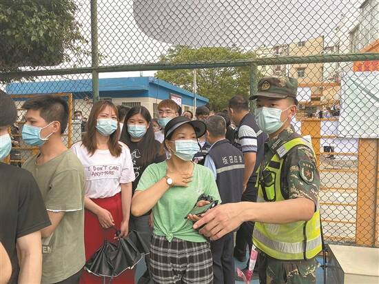 核酸检测现场,有民兵们的保驾护航