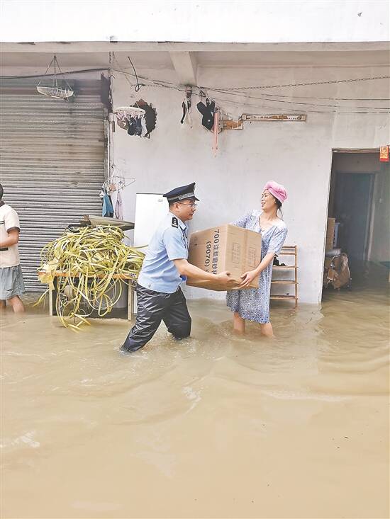 凌晨时分,香洲南溪派出所辖区南洋埔村浸水十分严重,多名群众受灾受困,情况紧急。南溪派出所所长谭家光带领10余名警力投入到排险救援中,并和街道、村组干部、综治巡逻队员和其他救援力量近40人共同参与营救。当天上午8时,成功转移了100多名受困群众,确保群众的生命财产安全。