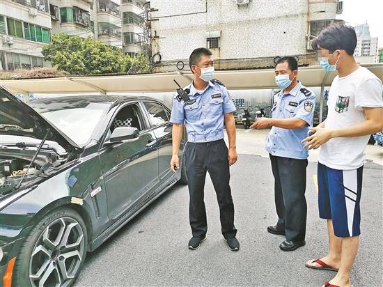 经过缜密侦查,6月8日7点20分许,民警在东平路佛陈大桥附近的小区地下车库找到了目标车辆,并在车主黄某旁观的情况下,对该车开展进一步查验。结果,民警发现该车的车头盖、轮毂、进气、涡轮、排气等外观、内部零件都被更换或改装了,只要按下加装的开关,车辆的排气声音便立马变大,一脚油门下去所发出的声浪更是让人无法忍受,“我知道不对了,这声音确实很大。”车主黄某在民警的教育后,意识到错误。