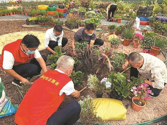社区群众齐心协力共建花园