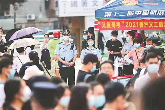 2021年全国普通高校招生统一考试(广东地区)于6月9日正式落下帷幕,为了给广大考生营造一个安全、有序的考试环境,珠海市公安局强化政治意识和责任担当,精准施策、主动作为,以营造“平安、公平、诚信、暖心、健康”高考为目标,发挥智慧警务和服务保障双擎驱动作用,按照最高工作标准,落实最严工作举措,全力以赴做好高考防疫,考试安全和服务保障等工作,确保了高考安全顺利有序进行,交上了出色“答卷”。