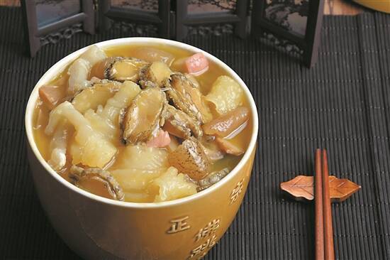 在珠海,用金贵食材炮制的佛跳墙,大多都出现在一些高档的粤菜餐厅,价格在300元-600元之间一锅。而近年来,有些连锁餐馆也提供了“廉价版”的佛跳墙,不用50元,就可以享用它用小砂锅煨出来的佛跳墙。因为改变了食材,后来此类主打“鲍鱼捞饭”的餐厅就越来越多了,不过它也不算是正版的佛跳墙。