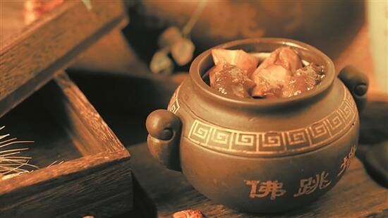 “坛启荤香飘四邻,佛闻弃禅跳墙来。”几十种原料煨于一坛,既有共同的荤味,又保持各自特色的“佛跳墙”早已蜚声海内外。这道菜海陆珍味互为渗透、味中有味,绝对担得起“国宴大菜”的称号。