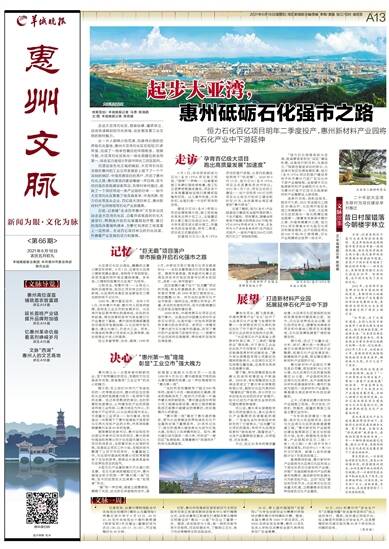 回望这座石化之城的崛起,大亚湾石化区无疑在惠州的工业立市发展史上留下了一个个深刻的烙印:中海壳牌项目的落户,开启了惠州石化之路;惠州港项目建设爆破一声巨响,至今仍回荡在首批建设者耳边;东联村举村搬迁,成就了一个项目带动一条产业链的壮举……如今大亚湾石化区聚集了埃克森美孚、中海壳牌、恒力石化等龙头企业,百亿级大项目林立,惠州新材料产业园将续写石化产业新篇章。