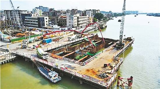 羊城晚报讯 记者曹月、通讯员张旭琳报道:大良大桥正在加紧建设中,近期建设有了重大进展。记者近日从顺德中心城区建设工程指挥部获悉,6月18日23时,由中铁大桥局承建的大良大桥3号主墩承台顺利完成浇筑,这标志着大良大桥水中作业完成,正式进入主塔施工阶段,为该桥施工安全防洪度汛提供可靠保障。