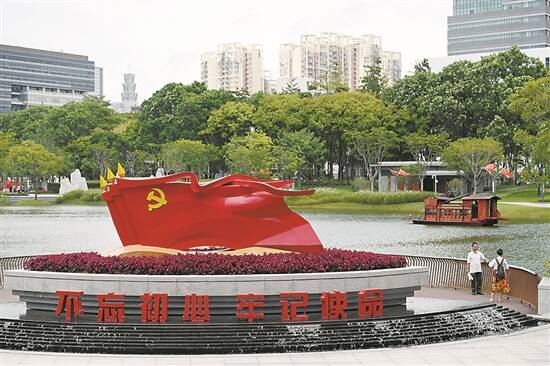 本次“百园荟萃 百年辉煌”活动点睛之作当数南山党建公园,它位于科技园中区,占地面积3.25万平方米、水域面积1.4万平方米。公园以党的革命和建设历程为脉络,依次设立红船精神、井冈山精神、延安精神、西柏坡精神、“两弹一星”精神、改革开放精神、新时代精神、抗疫精神8个展示点,进一步丰富了南山区党建工作阵地。