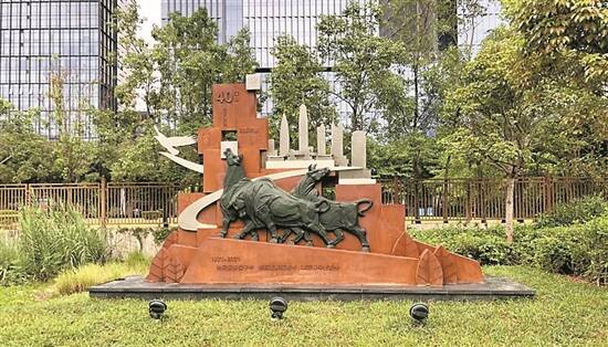 党建公园里的三牛雕塑