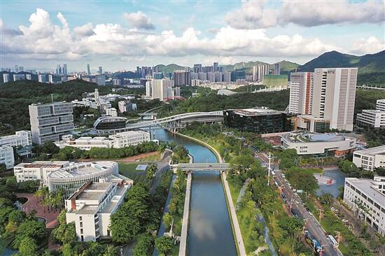 通过无人机航拍看到,上游的学院之道穿大学城而过,哈工大深圳校区、北大深研院、南科大等高校云集;中游城市森林段分布有大冲公园、大沙河公园、塘朗山、九祥岭湿地公园、西丽水库等生态绿地公园;大沙河下游连接深圳湾,水面宽阔,两岸空间通透流畅,是水上赛艇、皮划艇、龙舟赛等水上活动的重要场所。