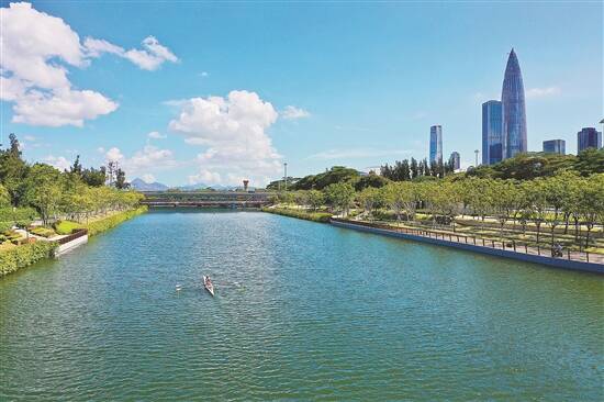 羊城晚报讯 记者王磊摄影报道:7月12日,记者来到深圳最大的滨水慢行系统——大沙河生态长廊进行航拍。