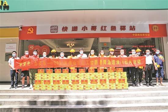 羊城晚报讯 记者欧阳志强、通讯员霍嘉琪摄影报道:炎炎夏日送清凉,丝丝关爱入心田。近日,佛山市总工会常务副主席蒋庆、副主席杨玉瑞等带队,分赴全市五区和部分市直有关高温作业单位、防疫酒店开展慰问活动,向高温作业的一线职工们送去防暑降温物品。