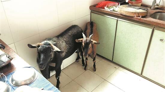 山羊在陈伯的厨房内,不肯走