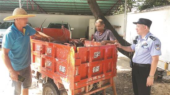 接到民警通知后,程先生开着三轮摩托车满心欢喜地来到大同社区民警中队领回这对“出走”的山羊,并连声称赞道:“人民警察为群众真心实意办实事,要为你们点100个赞。”
