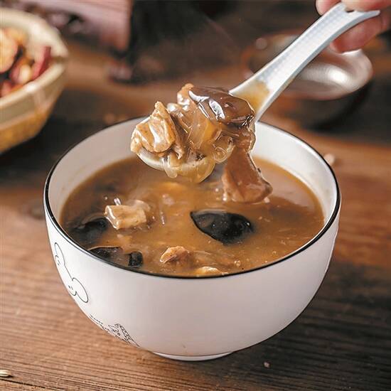 品尝到胡辣汤的第一口,便能体会它的温柔。牛肉的鲜味,没有被胡椒味盖住,软烂中还有几分卤牛肉的醇香;面筋和粉条吸饱了浓郁的汤汁,吃起来绵绵润润的,还透着微辣感。牛肉、面筋、粉条、木耳,一一入口,层次感非常丰富。