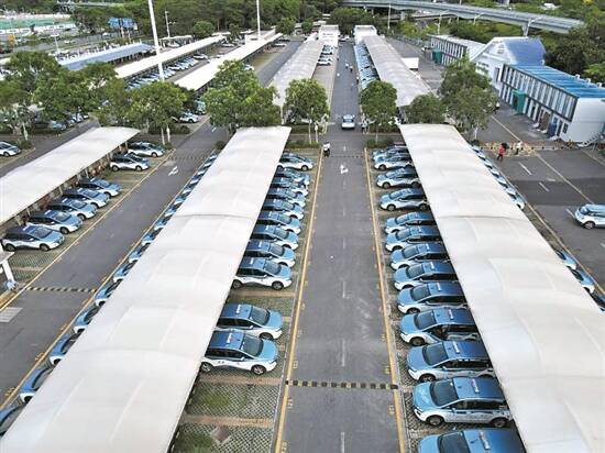 羊城晚报讯 记者李天军摄影报道:7月27日,记者从深圳市交通运输局获悉,民乐的士充电站仅用时半年已完成整体改造提升,建成了集充电、休息、餐饮、办公、维修等功能于一体的综合充电站。项目完工后,充电站综合服务能力大幅提升,日均充电突破4000车次,日均充电量达到240000度,建成汽车充电行业的标杆场站。