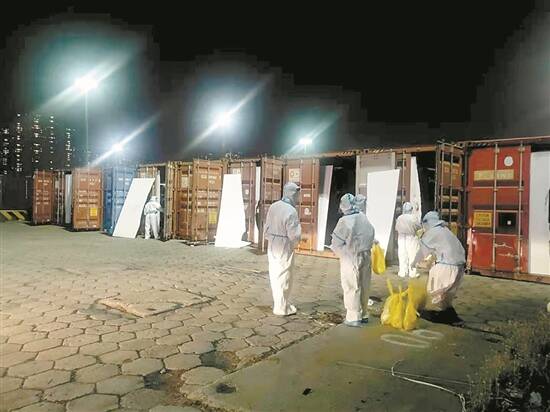经过清点,该船共载有33个货柜,内有来自巴西、西班牙的猪耳、鸡爪等冻品,总重约937.6吨,且船上人员无法提供货柜物品合法来源的手续。民警迅速通知南海区卫健部门对该船舶及两名船员进行核酸检测及消杀工作,检测结果均为阴性。目前,两名涉案人员吴某、黄某已被依法刑拘。