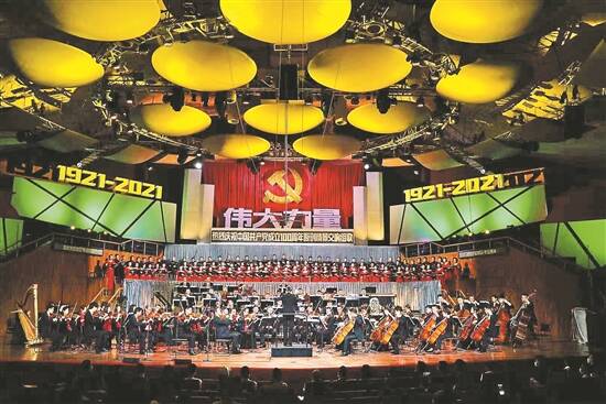 7月28日晚,“伟大力量” ——原创情景交响组歌在广州星海音乐厅交响乐演奏厅首演,用音乐庆祝中国共产党成立100周年。本次演出由广东省文学艺术界联合会、羊城晚报报业集团、广东省音乐家协会、广州广播电视台、广州广电传媒集团主办,筹备期长达两年,共有超过570位演职人员参与,其中包括360多位艺术家。这台音乐会是如何炼成的?羊城晚报记者独家专访本次演出的总监制金旭庚和总导演王钧,听他们讲述这台“伟大力量”背后的故事。
