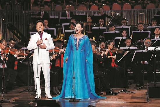 歌唱家唐彪(左)和任雯文(右)男女声对唱《未来和希望》
