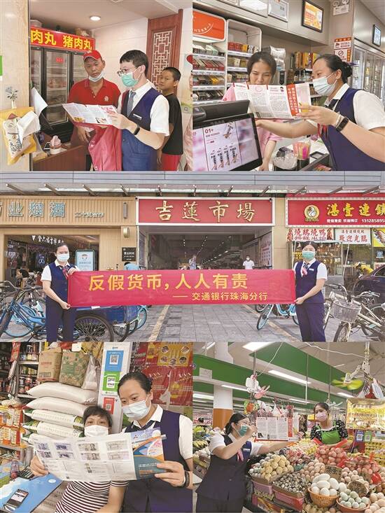 在吉莲市场的宣传现场,交通银行珠海分行工作人员通过派发反假货币知识宣传折页、张贴反假货币宣传海报、悬挂“反假货币,人人有责”宣传标语等形式,宣传反假货币知识,热情解答市民提出的问题,切实让社会公众在宣传活动中受益。为扩大本次不宜流通人民币回收暨人民币知识宣传活动的覆盖面,交通银行珠海分行工作人员深入吉莲社区商铺店面,利用人民币防伪特征图为群众展开细致讲解,正确引导社会公众自觉抵制和有效防范假币。