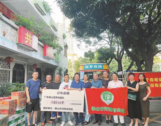 佛山市河南商会捐款给第一时间赶赴救灾的佛山市菠萝救援队
