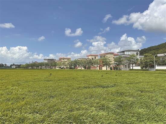 上洲村的村前是连片的稻田。“这块大田是上洲村的一块宝地。”村民卢伯笑称,上洲村很久以前四周都是海,通过联围慢慢形成了稻田,所以大家都把稻田当做宝。