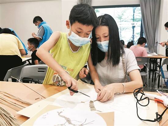 据了解,莞草贴画制作过程相对繁琐,亲子家庭通过老师引导,经过“一草、一粘、一笔、一剪”,逐步呈现一幅幅精美的作品。在文化艺术中心,以剪贴、编织而形成的莞草作品,频频引来工作人员和其他参观者驻足欣赏。参与活动的家长表示,这次活动很有意义,对培养小孩子动手能力、增进亲子感情等都很有益处。