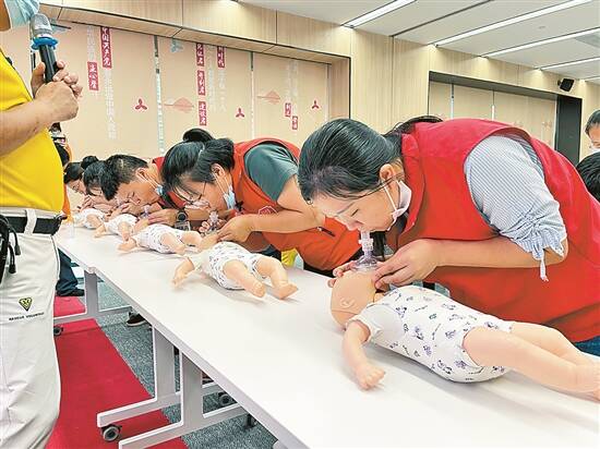 据悉,整个培训计划由理论知识学习、实操学习、考取证书、专项培训、定期复训五个部分组成。其中理论知识学习主要涵盖:如何求助、发现问题、正确防护与救护。实操学习方面,主要学习心肺复苏与自动体外除颤器(AED)的使用,以及气道梗阻的急救现场处理方法。培训知识贴近生活,均为生活中常见、易发生的意外情况。