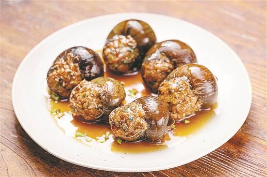 笔者个人认为,最惹味的便是田螺酿。笔者在阳朔西街吃过后已是年年不忘。7月,田螺结束产仔,渐渐变得肥美起来,8月份正是购买的好季节。田螺酿就是将田螺入沸水汆烫,取出螺肉,将螺肉与猪肉切碎混合后重新塞入田螺壳内,炖煮10分钟就能出锅。挑出田螺内的酿肉入口,鲜美细腻,令人一口难忘。