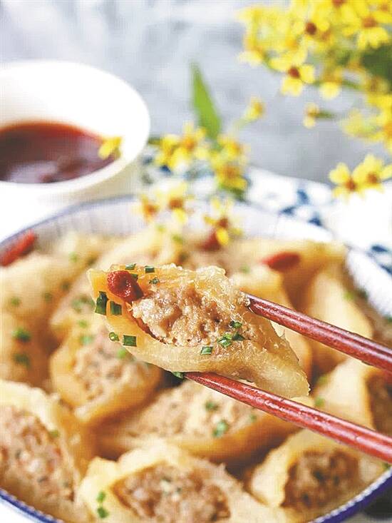 酿豆腐对手拙的人来说未免太难,有的地方就改用油豆腐酿肉、油面筋酿肉。油豆腐、油面筋经过沸油煎炸,色泽金黄,细致绵空,中空的内里正好填入饱满的肉馅,个个圆鼓鼓、饱囊囊,可蒸可煎,可煲可煮,特别是一碗三鲜汤中,加入几颗油豆腐酿肉,是清亮汤汁中“吊”鲜的秘密。