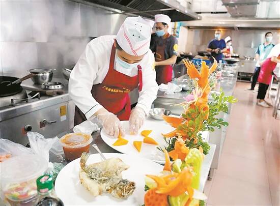 羊城晚报讯 记者梁正杰、通讯员刘颖君摄影报道:为提升九江鱼花品牌知名度、美誉度和影响力,展示九江鲈鱼优良品质,塑造“九江鲈鱼——吃出全国风味”品牌形象,近日,南海区九江镇举办了第九届“渔耕粤韵”文化系列活动之2021年九江镇“粤菜师傅”工程“饭香刀”厨艺大赛。九江职业技术学校作为协办单位全程参与培训及比赛考核工作,九江水产协会为大赛培训和考核共提供了298条鲈鱼。