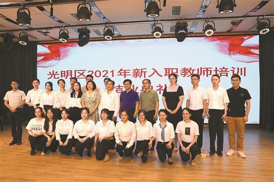 在健全中小学校长梯次发展体系基础上,光明区教育局推出的光明区中小学新教师“筑梦”计划,面向光明区每年新入职的教师进行为期一年的培养。“筑梦”计划分三阶段,全区集中岗前培训、学校自主培训及全区集中培训(为期一年)、举办区级教学比赛(为期半年)。