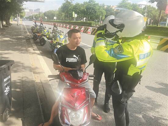 顺德交警查获市民骑电单车不戴头盔