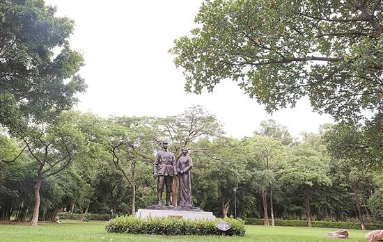 长安公园内叶挺、李秀文的雕像