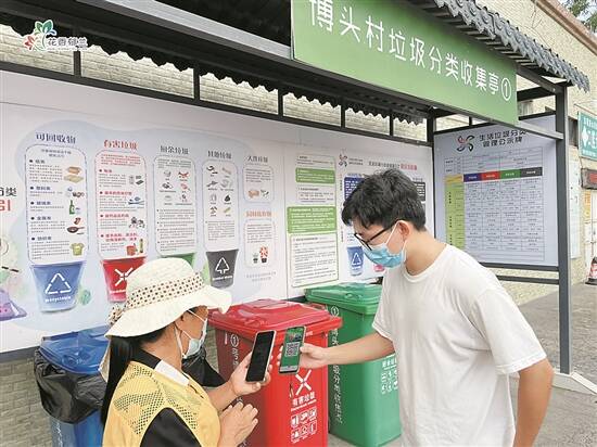 引导员指引业主将生活垃圾分类并注册绿色账户