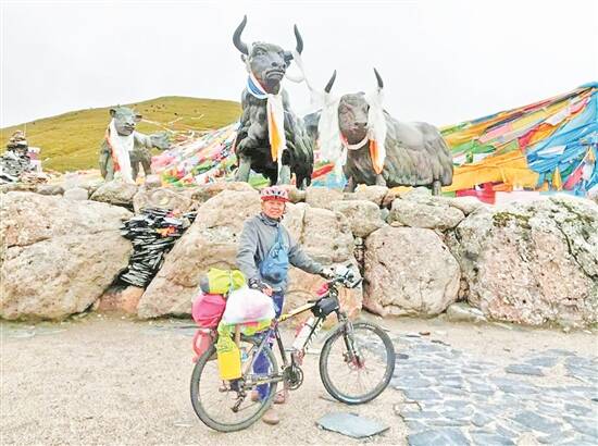羊城晚报讯 记者王俊伟、通讯员涂丫报道:前不久,东莞厚街南五社区59岁的陈炳坤,只身一人从东莞厚街出发骑行3916公里到达西藏。一路上他经历爆胎、单车打滑摔伤、因感冒患肺水肿住院等突发事件,历经36天,终于到达西藏布达拉宫。
