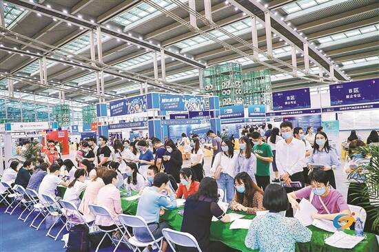 羊城晚报讯 记者沈婷婷、通讯员姜斌摄影报道:10月10日,2021年第二十五届全国高校毕业生秋季就业双选会(以下简称“双选会”)在深圳会展中心1号馆举办,650家以上深圳本土用人单位现场揽才,共提供5000多个职位,超3万个就业岗位。1.6万人次来到现场参会,用人单位合计收到简历总数约1.8万余份,现场达成初步就业意向率近28%。