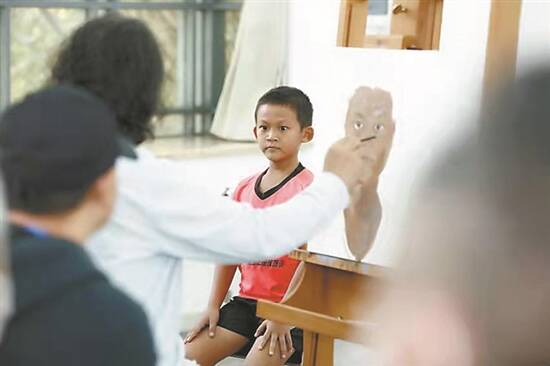 羊城晚报讯 记者余晓玲、通讯员黄雪韵报道:以往的周日,东莞足球少年李建阳会在离家不远的球场踢上一整天球。而上个周日,他在椅子上坐了一整天。第一次当绘画模特,他对画家的一举一动都十分好奇。