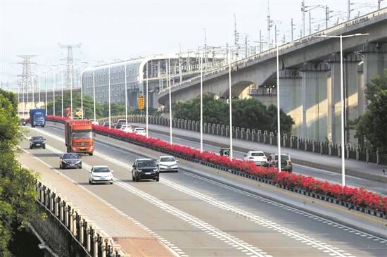 羊城晚报讯 记者余宝珠、通讯员水乡宣摄影报道:近段时间以来,通勤经过东莞水乡大道的司机们惊喜地发现,这条交通大动脉大变模样:两旁绿植错落有致,扶桑花三角梅花开正艳,姹紫嫣红点亮道路景观。当夜幕降临后,水乡大道两旁亮起各式霓虹灯,呈现出魅力多彩的水乡夜景。
