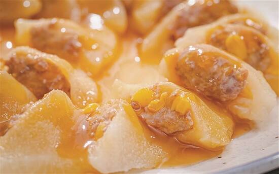 说起用柚子做的美味,就不得不提客家名菜——柚子酿。每当柚子丰收的季节,客家地区的不少家庭都会制作这道菜。用柚子皮制作酿菜可以很好地降燥祛火。首先将柚皮切成三角形状,去除柚子的黄皮,剩下的白瓤,水中煮软捞起,拧干水。最后塞入你喜欢的馅料,上锅蒸熟后淋上酱汁就能食用。