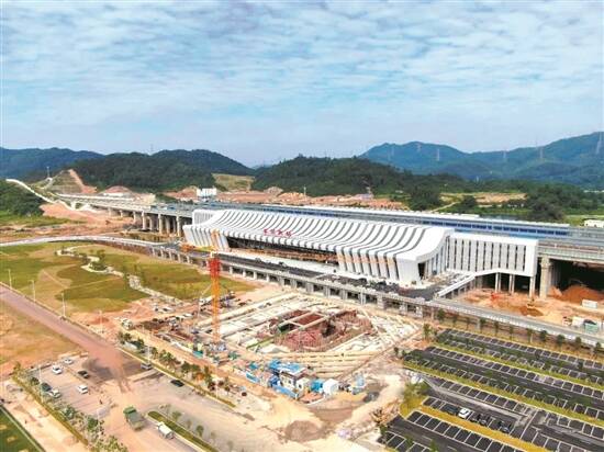 羊城晚报讯 记者秦小辉、通讯员唐先摄影报道:赣深高铁拟于12月通车。20日,记者从东莞市塘厦镇获悉,作为赣深高铁新建车站中的第二大站,东莞南站周边多项配套工程正全力推进,多项工程已接近尾声。据悉,赣深高铁通车后,赣州至深圳的列车旅行时间将由现在的近7个小时缩短为2个小时左右,东莞南站到深圳北站所需时间约20分钟,到赣州所需时间不足两小时。