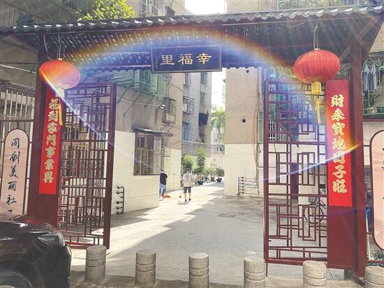 穿过一座古色古香的“潮”味门亭,中式铁艺围栏内4栋居民楼高高矗立着,居民楼之间平坦干净的水泥地面,两个小孩正在父母的指导下练习羽毛球,旁边不远处几位上了年纪的阿姨正围坐在一起,品着工夫茶闲话家常,脸上洋溢着幸福的笑容……金秋十月,和煦的阳光中,一幅岁月静好的画面在潮州市湘桥区西新街道春城楼社区的幸福里小区中铺开。
