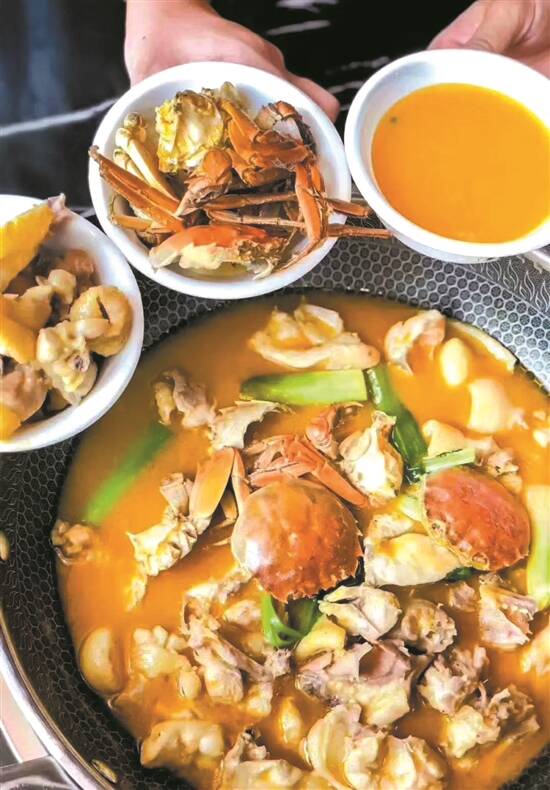 白坭鸡煲蟹的秘密还在于独有的鸡煲蟹汤汁,汤汁为独门秘制酱汁,精明的食客都会捞汤汁拌饭吃!