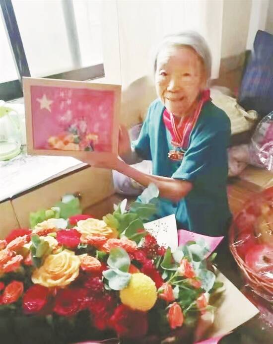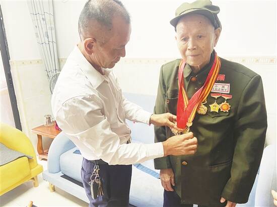 梁惠平帮父亲梁金古整理衣服,父子两人都上过前线作战