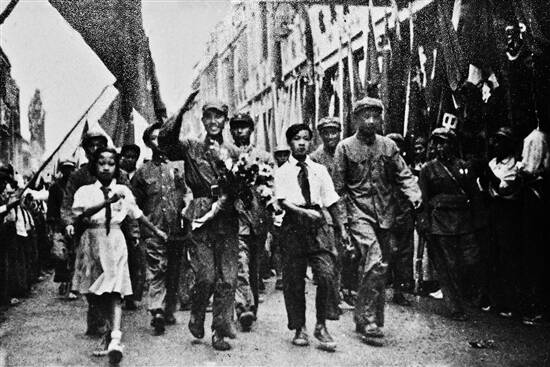 1951年5月1日,原惠阳地区老百姓掀起游行集会热潮,开展抗美援朝运动。学生与部队一同上街游行 马春玉 摄