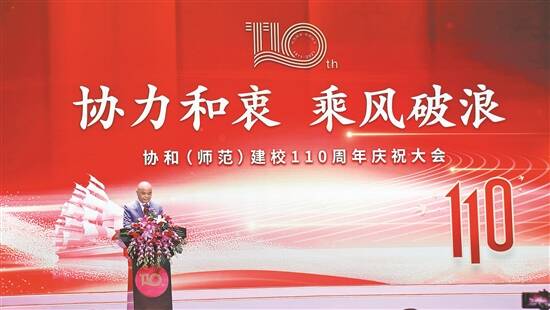11月14日的广州市协和中学(下称“协和”)校园内彩旗飘扬,喜气洋洋,建校110周年庆祝活动在线上线下同步举行。各届校友、各兄弟学校领导、澳门协和校友会代表,穗港澳姊妹学校领导等,欢聚一堂,共襄庆典。被誉为“广州基础教育黄埔军校”的协和,在校庆日当天可谓群贤毕至,大咖云集。此次校庆活动以“协力和衷,乘风破浪”为主题,开展了一系列文化活动,这是一次文化人的聚会,更是学校向外界展示协和文化的盛会。