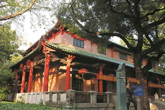 中山公园内,樟树掩映中,有一座红墙红柱绿瓦的建筑尤为引人注目,这便是著名的佛山精武体育会会址。据了解,精武体育会旧址建于民国二十三年(1934年),是铜铁梁架砖墙坊清代殿堂建筑,建筑面积约700平方米,是市民进行武术文化交流的重要场所。1988年4月,佛山精武体育会会址被佛山市人民政府定为市级文物保护单位。